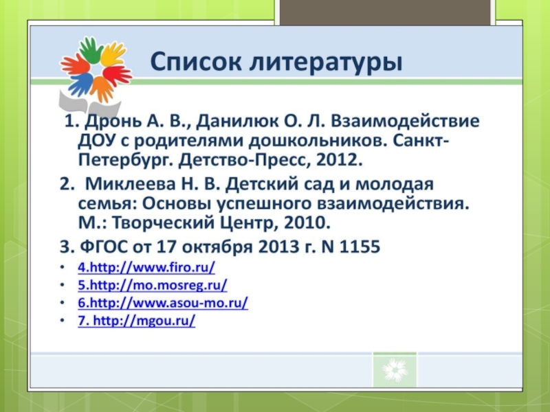 Это сайт презентаций, где можно хранить и обмениваться своими презентациями, докладами, проектами, шаблонами в формате PowerPoint с другими пользователями. Мы помогаем школьникам, студентам, учителям, преподавателям хранить и обмениваться учебными материалами.