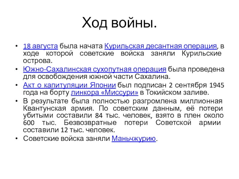 в войну с Японской империей и внеся весомый вклад в её разгром, ускорил окончание Второй мировой войны.