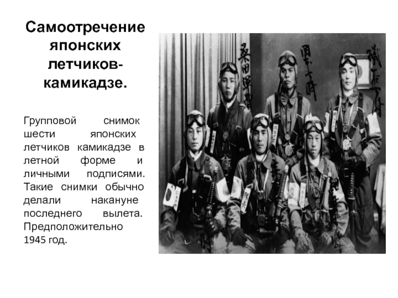 Слайд 10Самоотречение японских летчиков- камикадзе.