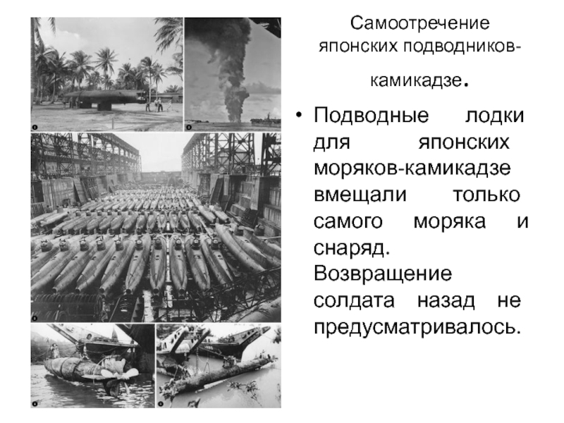 Слайд 9Самоотречение японских подводников-камикадзе.