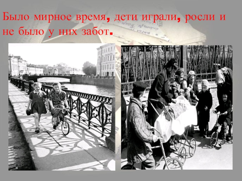 Слайд 22Было мирное время, дети играли, росли и не было у них
