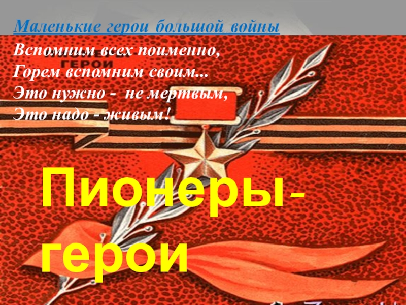Слайд 32Маленькие герои большой войны