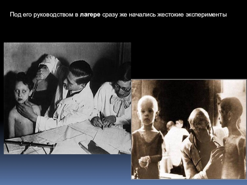 Слайд 83Под его руководством в лагере сразу же начались жестокие эксперименты
