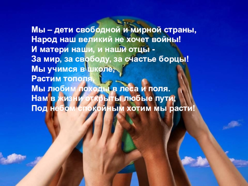 Слайд 121Мы – дети свободной и мирной страны,