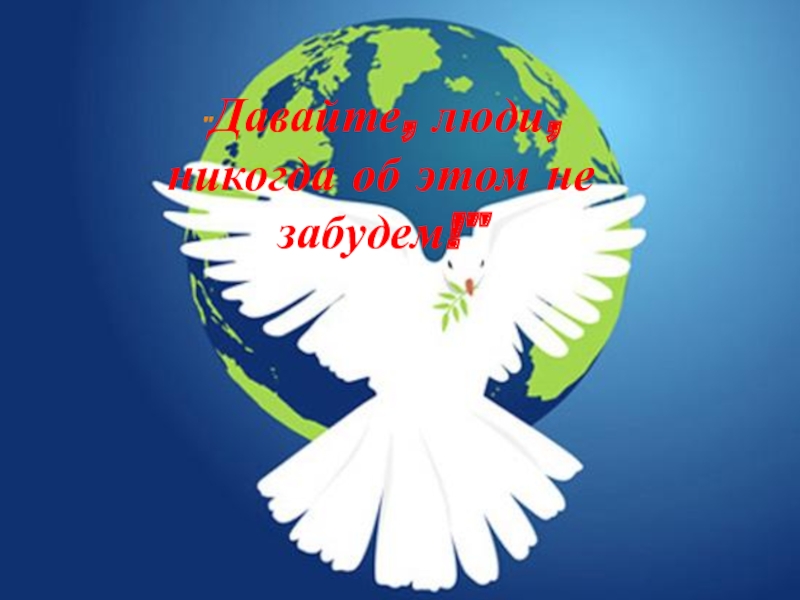 Слайд 98"Давайте, люди, никогда об этом не забудем!"