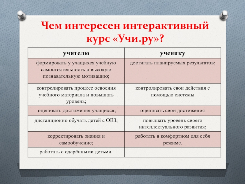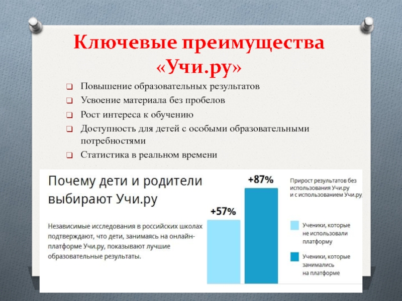 Это сайт презентаций, где можно хранить и обмениваться своими презентациями, докладами, проектами, шаблонами в формате PowerPoint с другими пользователями. Мы помогаем школьникам, студентам, учителям, преподавателям хранить и обмениваться учебными материалами.
