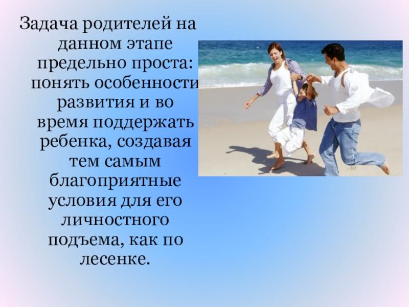 Слайд 38Задача родителей на данном этапе предельно проста: понять особенности развития и