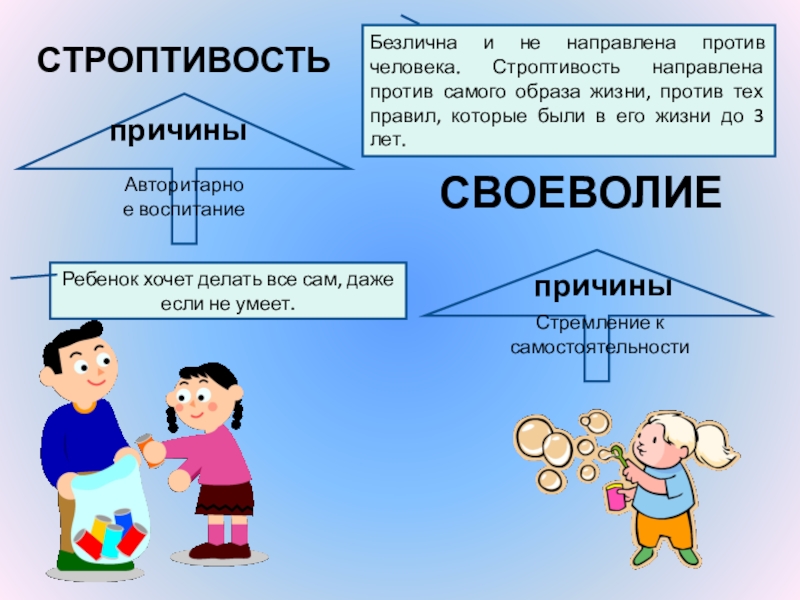 При непослушании он следует своему желанию, которое идет вразрез с желанием взрослого.