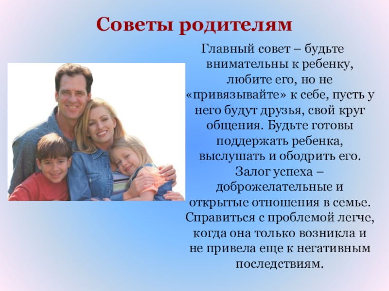 Слайд 39Советы родителям