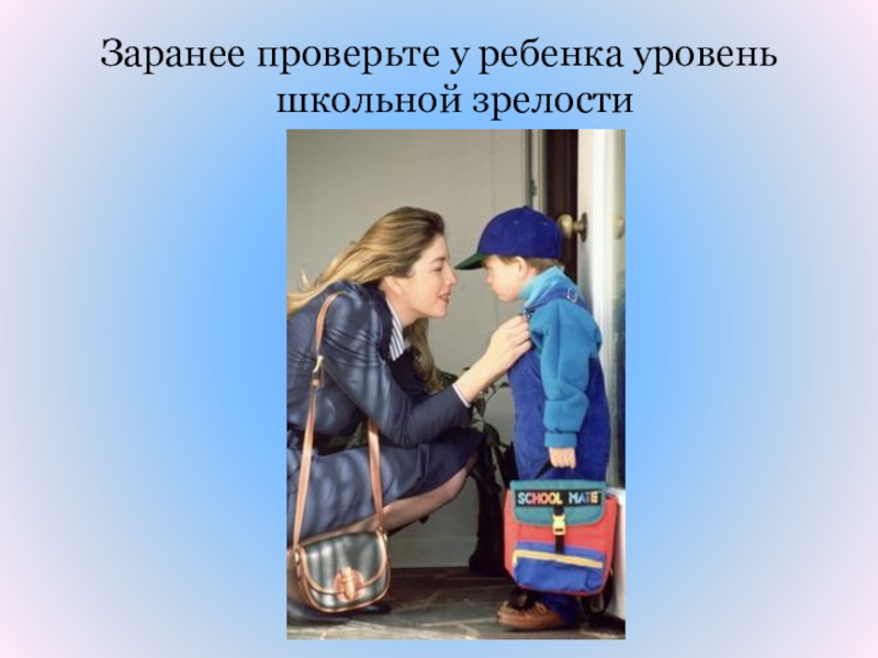 Слайд 40Заранее проверьте у ребенка уровень школьной зрелости