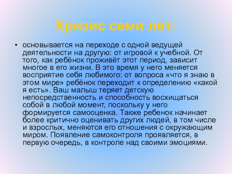 Слайд 23Кризис семи лет: