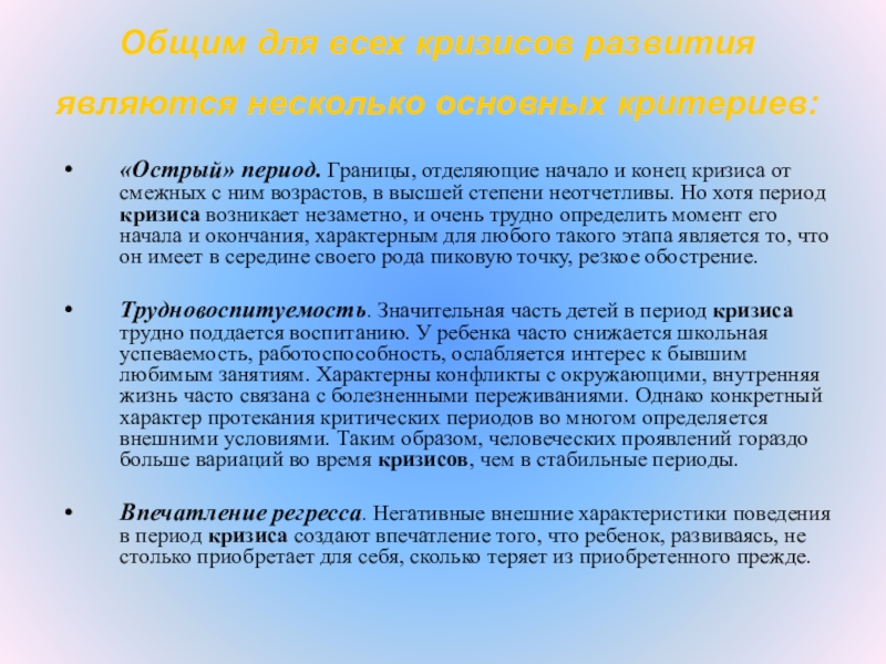 Слайд 5Общим для всех кризисов развития являются несколько основных критериев: