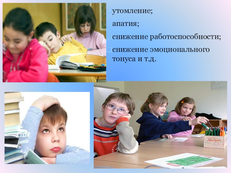 Слайд 32утомление;