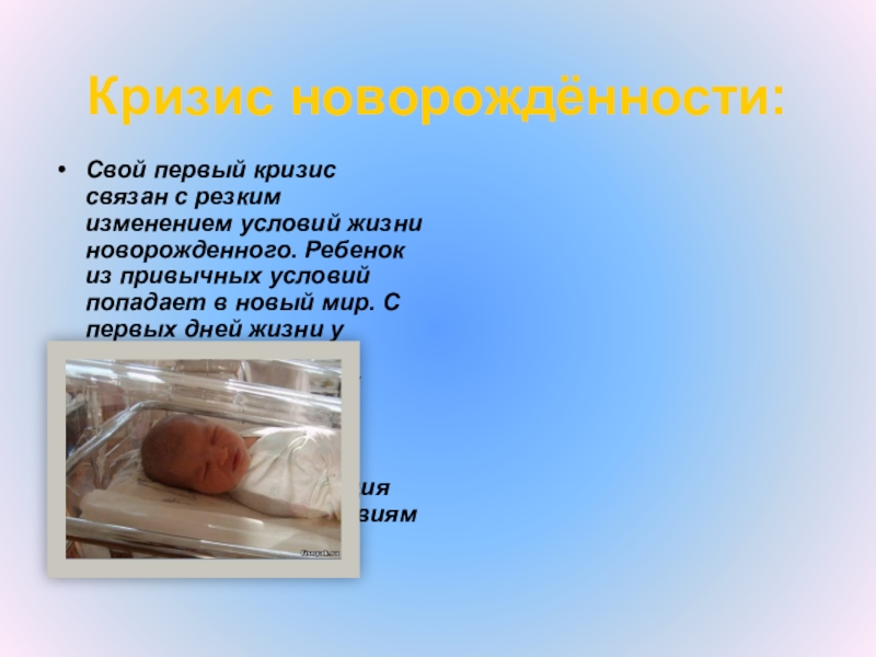 Слайд 6Кризис новорождённости: