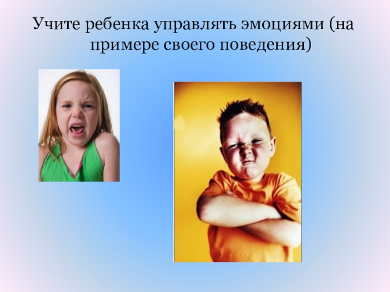 Слайд 43Учите ребенка управлять эмоциями (на примере своего поведения)