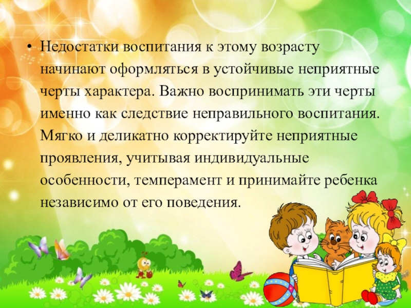 Слайд 6Недостатки воспитания к этому возрасту начинают оформляться в устойчивые неприятные черты