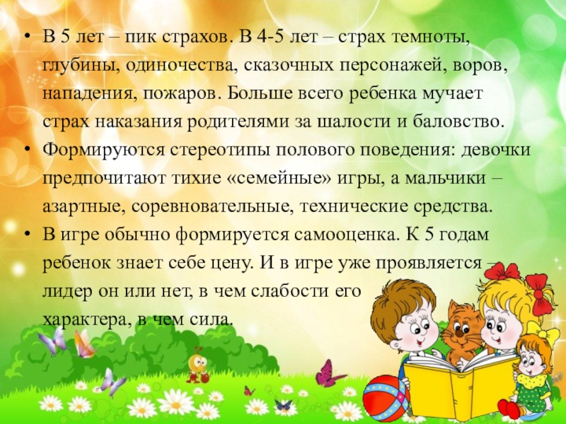 Слайд 4В 5 лет – пик страхов. В 4-5 лет – страх