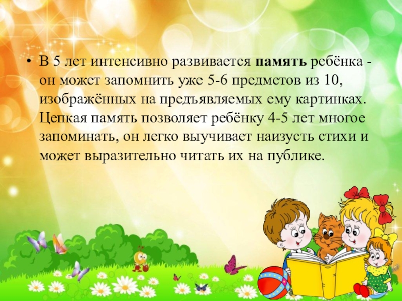 Слайд 17В 5 лет интенсивно развивается память ребёнка - он может запомнить