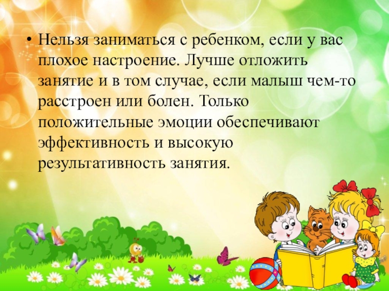 Слайд 22Нельзя заниматься с ребенком, если у вас плохое настроение. Лучше отложить