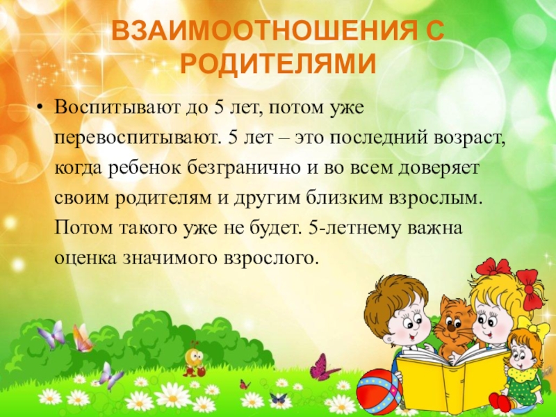 – это последний возраст, когда ребенок безгранично и во всем доверяет своим родителям и другим близким взрослым. Потом такого уже не будет. 5-летнему важна оценка значимого взрослого.
