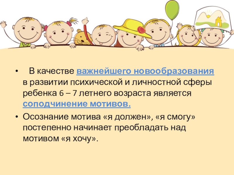Осознание мотива «я должен», «я смогу» постепенно начинает преобладать над мотивом «я хочу».