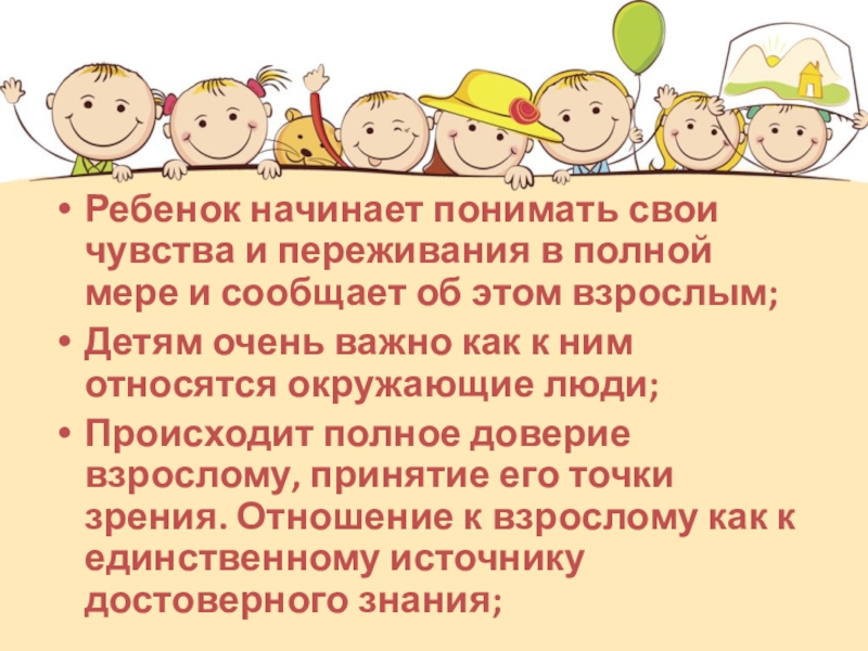 Слайд 18Ребенок начинает понимать свои чувства и переживания в полной мере и