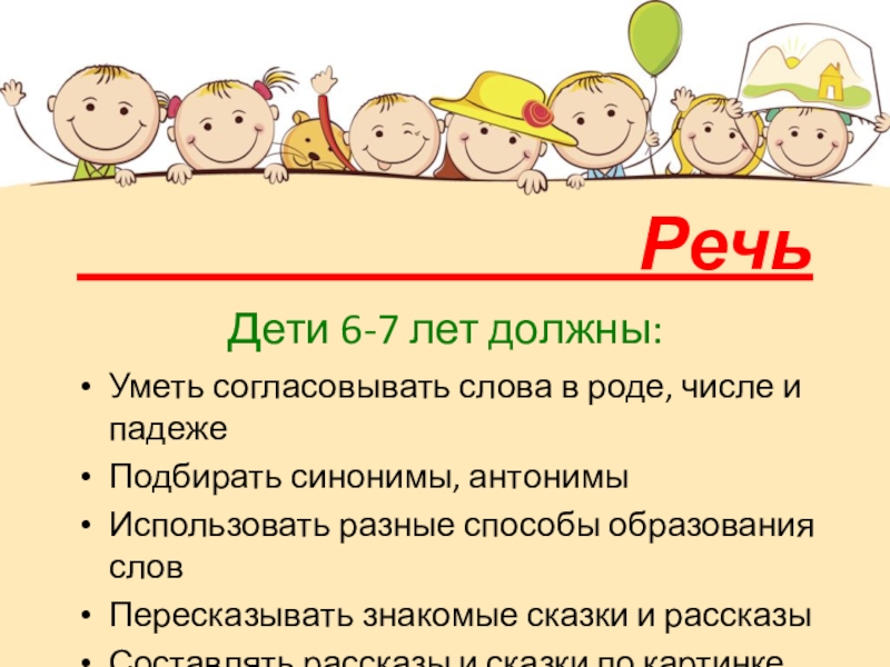 Слайд 26Дети 6-7 лет должны уметь: