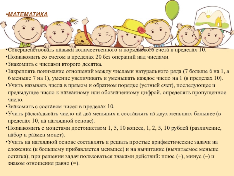 Совершенствовать навыки количественного и порядкового счета в пределах 10.
