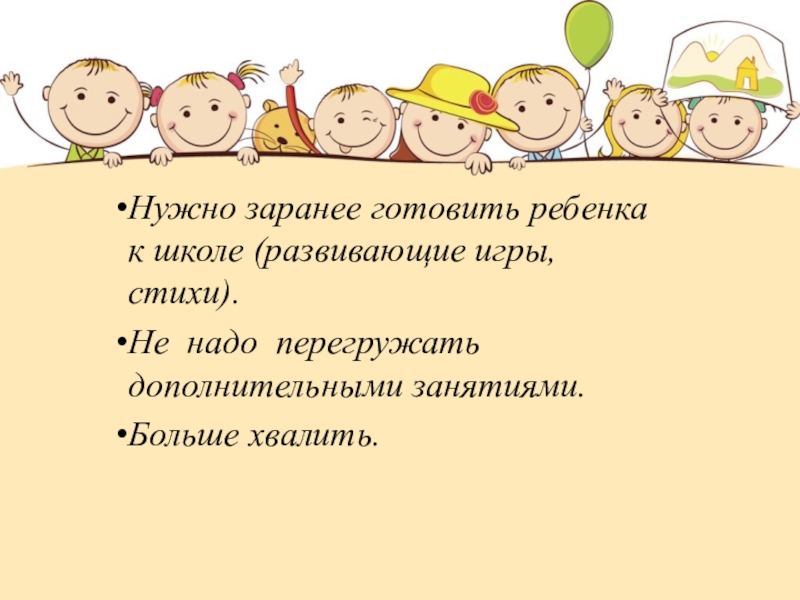 Слайд 25Нужно заранее готовить ребенка к школе (развивающие игры, стихи).