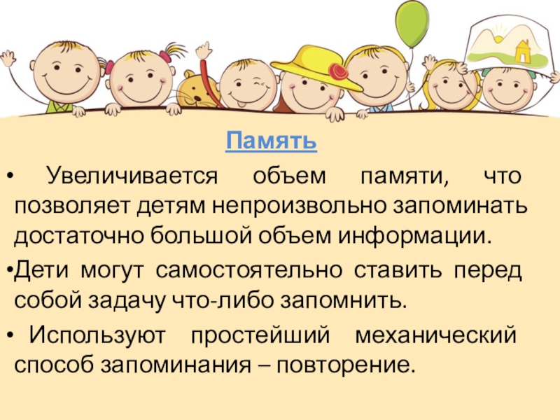 Увеличивается объем памяти, что позволяет детям непроизвольно запоминать достаточно большой