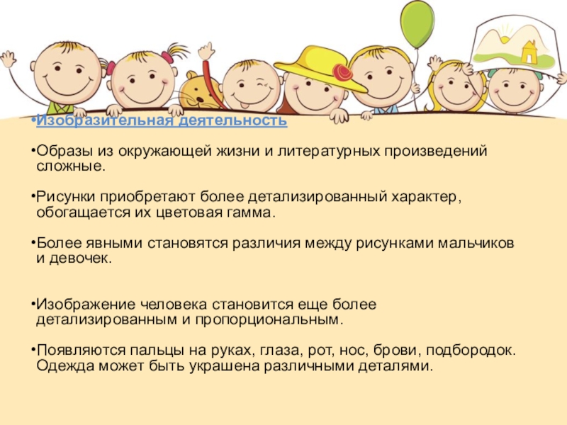 Продолжает развиваться воображение, однако часто приходится констатировать снижение развития воображения в этом возрасте в сравнении со старшей группой.