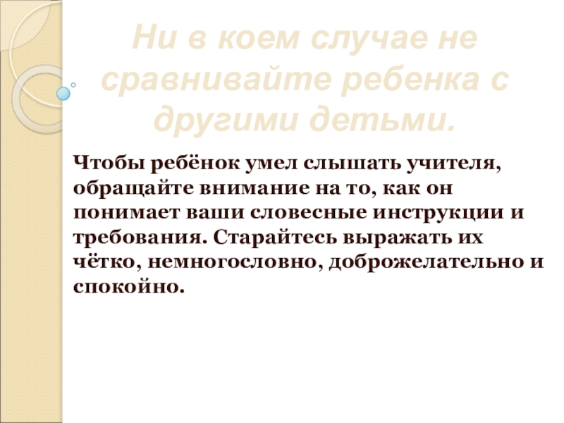 Ни в коем случае не сравнивайте ребенка с другими детьми.