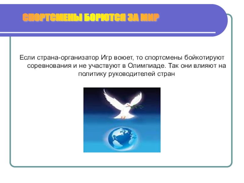 СПОРТСМЕНЫ БОРЮТСЯ ЗА МИР