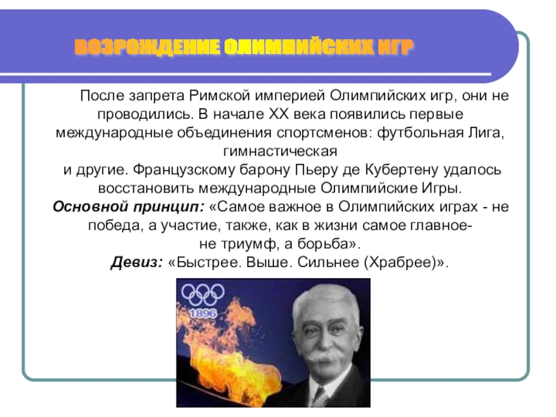 ВОЗРОЖДЕНИЕ ОЛИМПИЙСКИХ ИГР