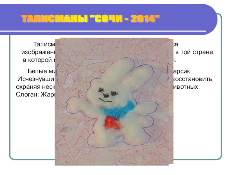 Белые мишка Полюс, заяц Стрелка и леопард Барсик.