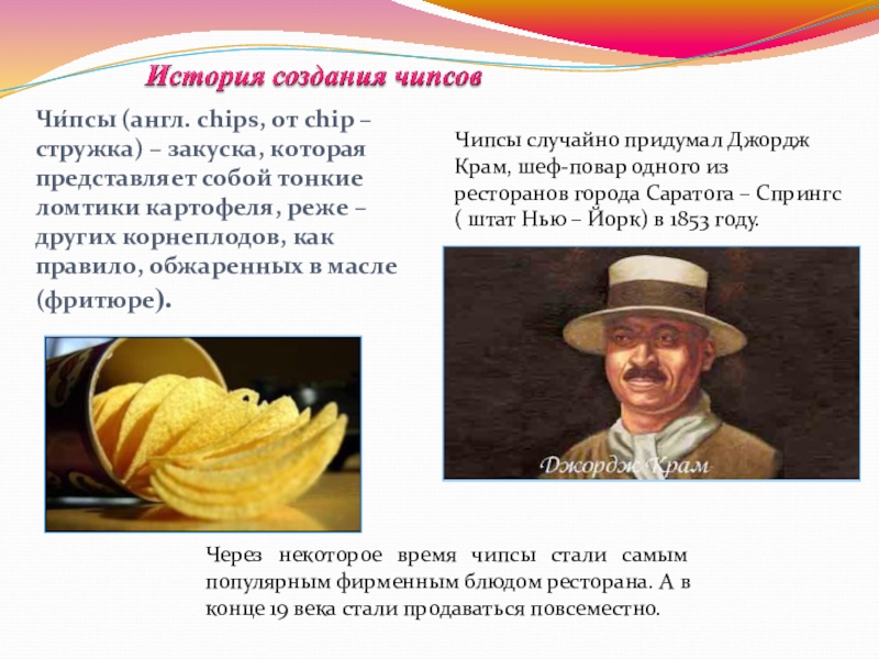 Через некоторое время чипсы стали самым популярным фирменным блюдом ресторана. А в конце 19 века стали продаваться повсеместно.