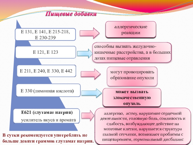 аллергию, астму, нарушение сердечной деятельности, головную боль, сонливость и слабость, возбуждающее действие на мозговые клетки, нарушается структура глазной сетчатки, возникают проблемы с пищеварением, гормональный дисбаланс