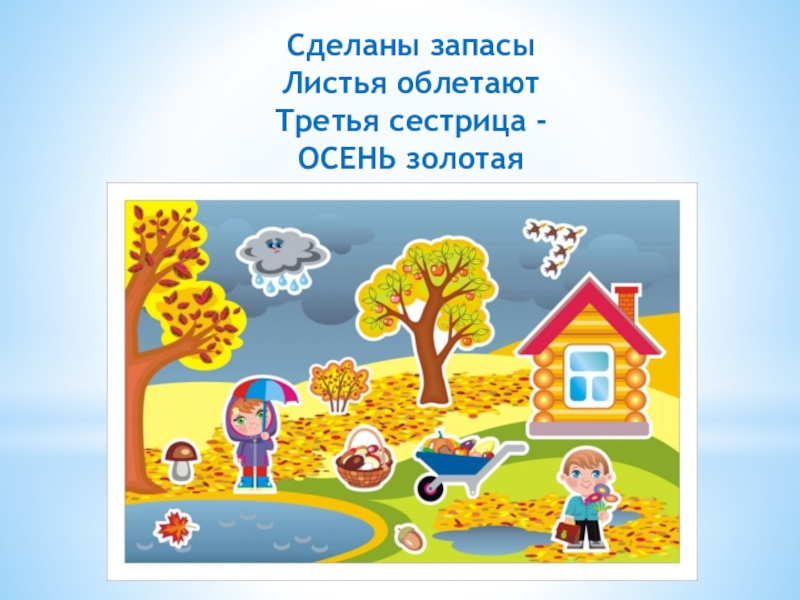 Сделаны запасыЛистья облетаютТретья сестрица -ОСЕНЬ золотая