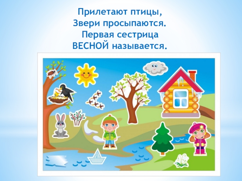 Прилетают птицы,Звери просыпаются.Первая сестрицаВЕСНОЙ называется.