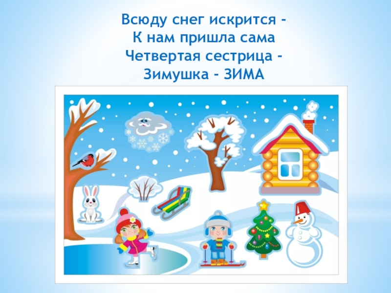Всюду снег искрится -К нам пришла самаЧетвертая сестрица -Зимушка - ЗИМА