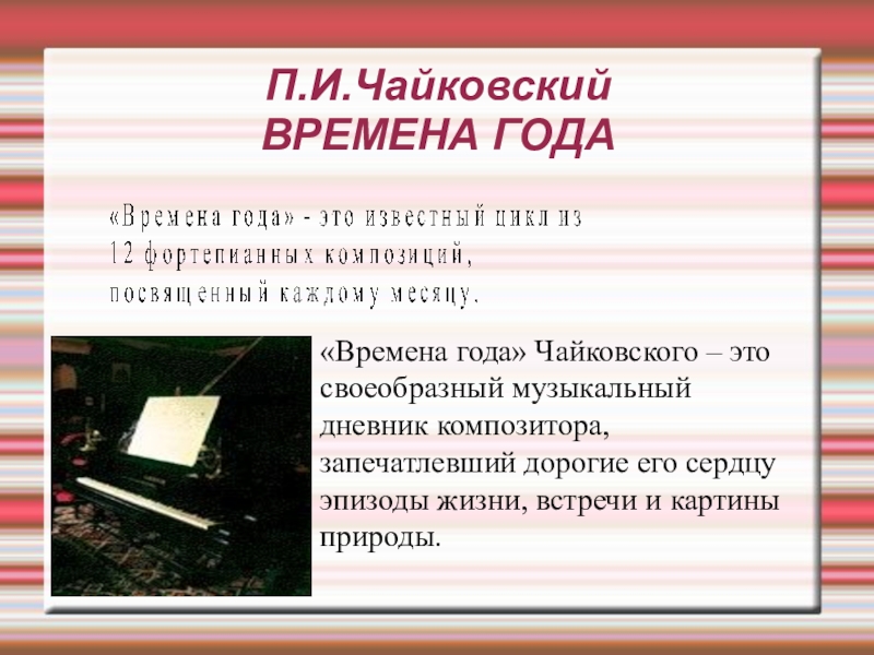 «Времена года» Чайковского – это своеобразный музыкальный дневник композитора, запечатлевший