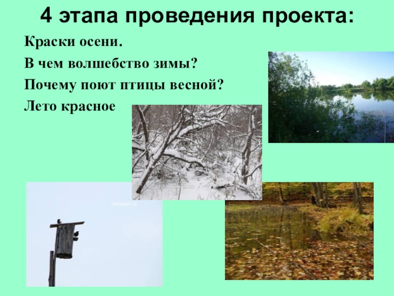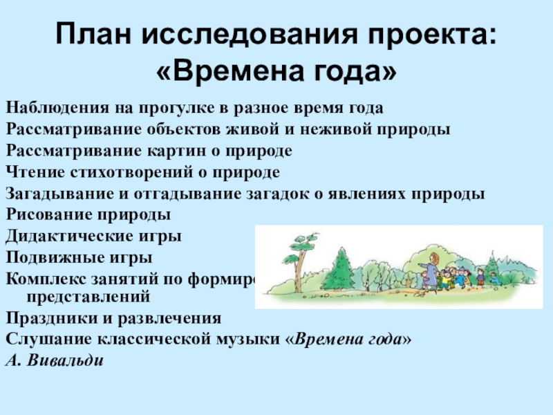 Слайд 7План исследования проекта: «Времена года»