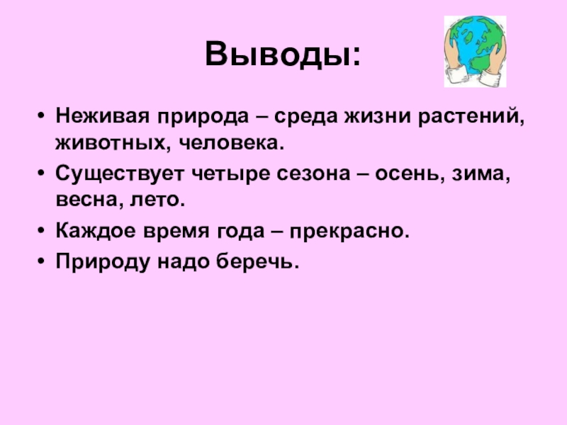 Неживая природа – среда жизни растений, животных, человека.