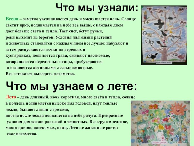 Лето – день длинный, ночь короткая, много света и тепла, солнце