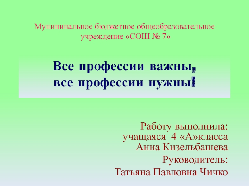 выполнила: учащаяся 4 «А»класса Анна Кизельбашева