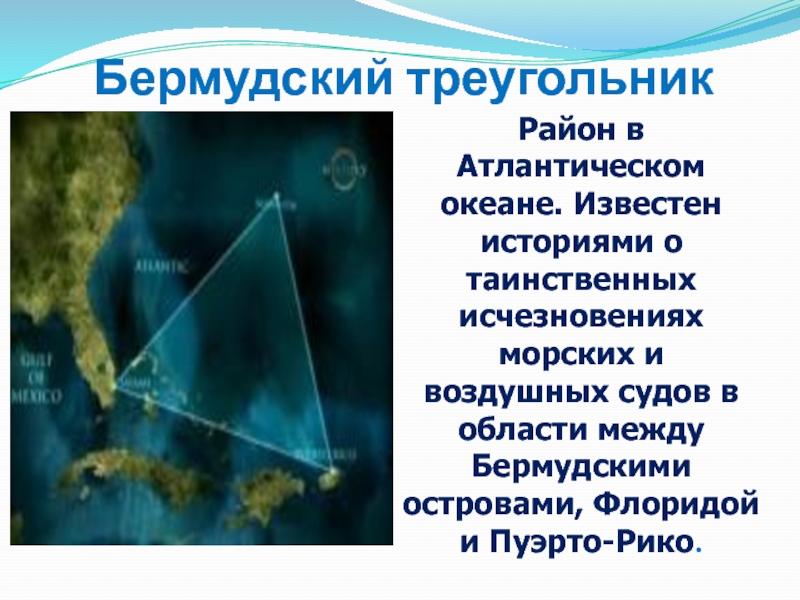 Район в Атлантическом океане. Известен историями о таинственных исчезновениях морских