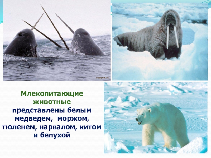 представлены белым медведем, моржом, тюленем, нарвалом, китом и белухой