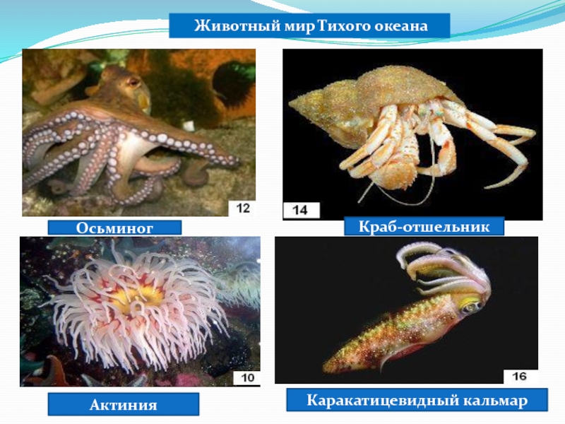 раза богаче, чем в других океанах. Здесь обитают большое количество древних видов морских ежей, мечехвостов, некоторые очень древние рыбы, не сохранившиеся в других океанах (например, иордания, гильбертидия).
