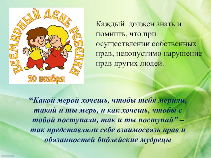 “Какой мерой хочешь, чтобы тебя мерили, такой и ты мерь, и как хочешь, чтобы с тобой поступали, так и ты поступай” – так представляли себе взаимосвязь прав и обязанностей библейские мудрецы