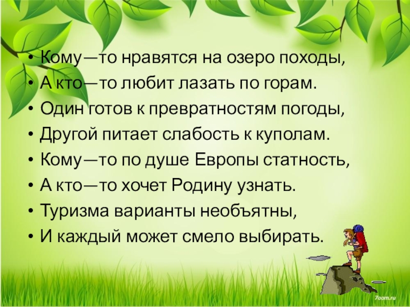Слайд 17Какие виды туризма предпочли бы вы и почему?